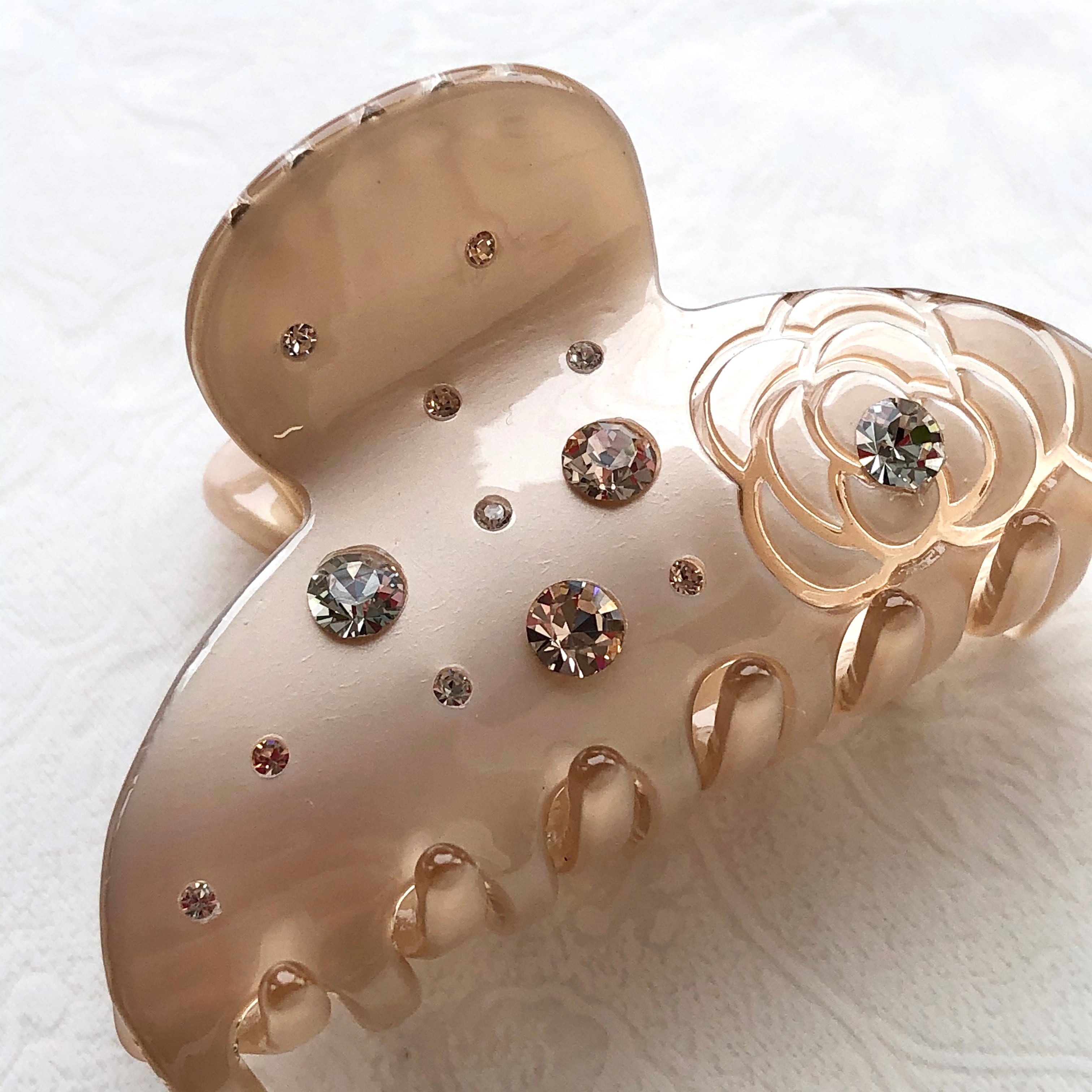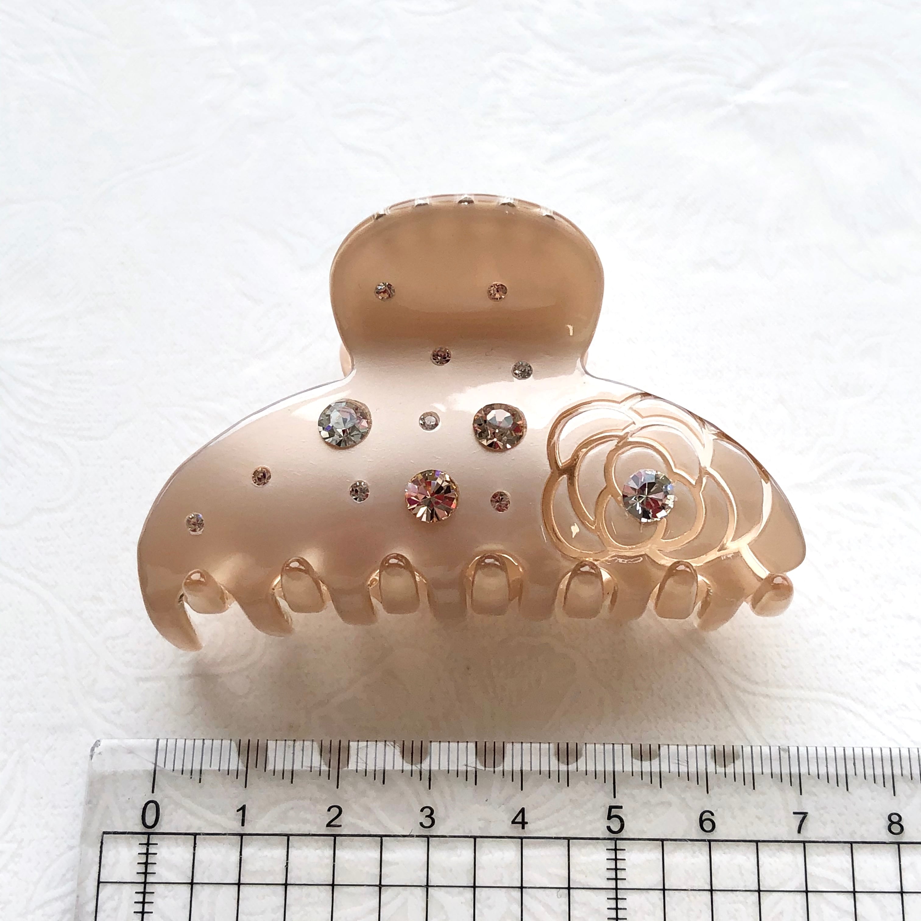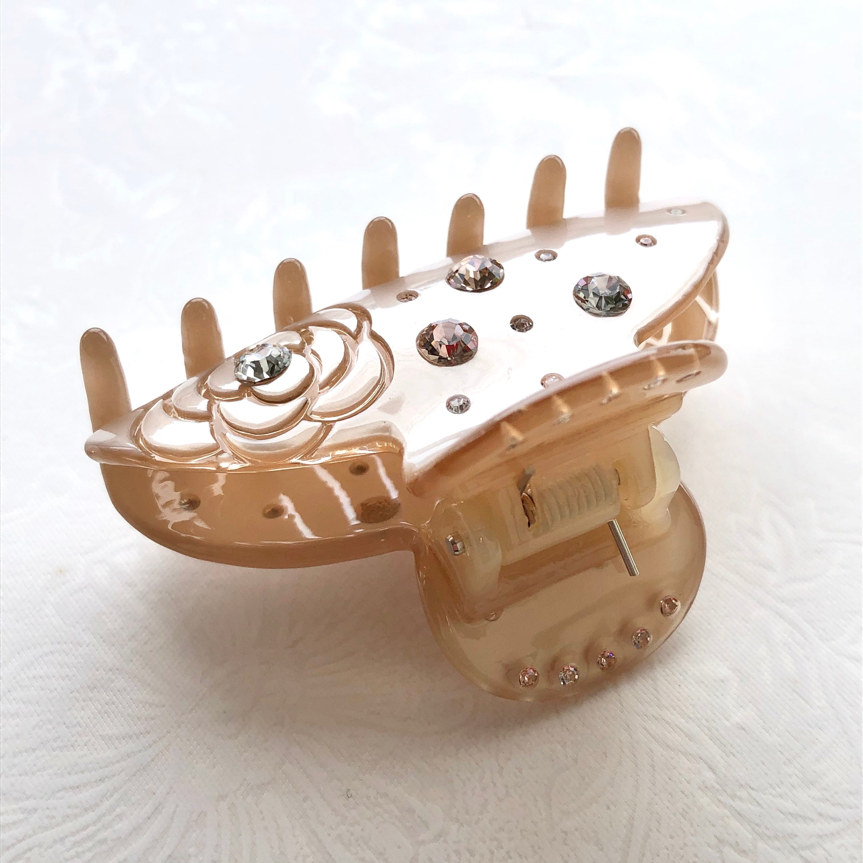 スワロフスキー★カメリア デザイン バンスクリップ☆ベージュ アセテート